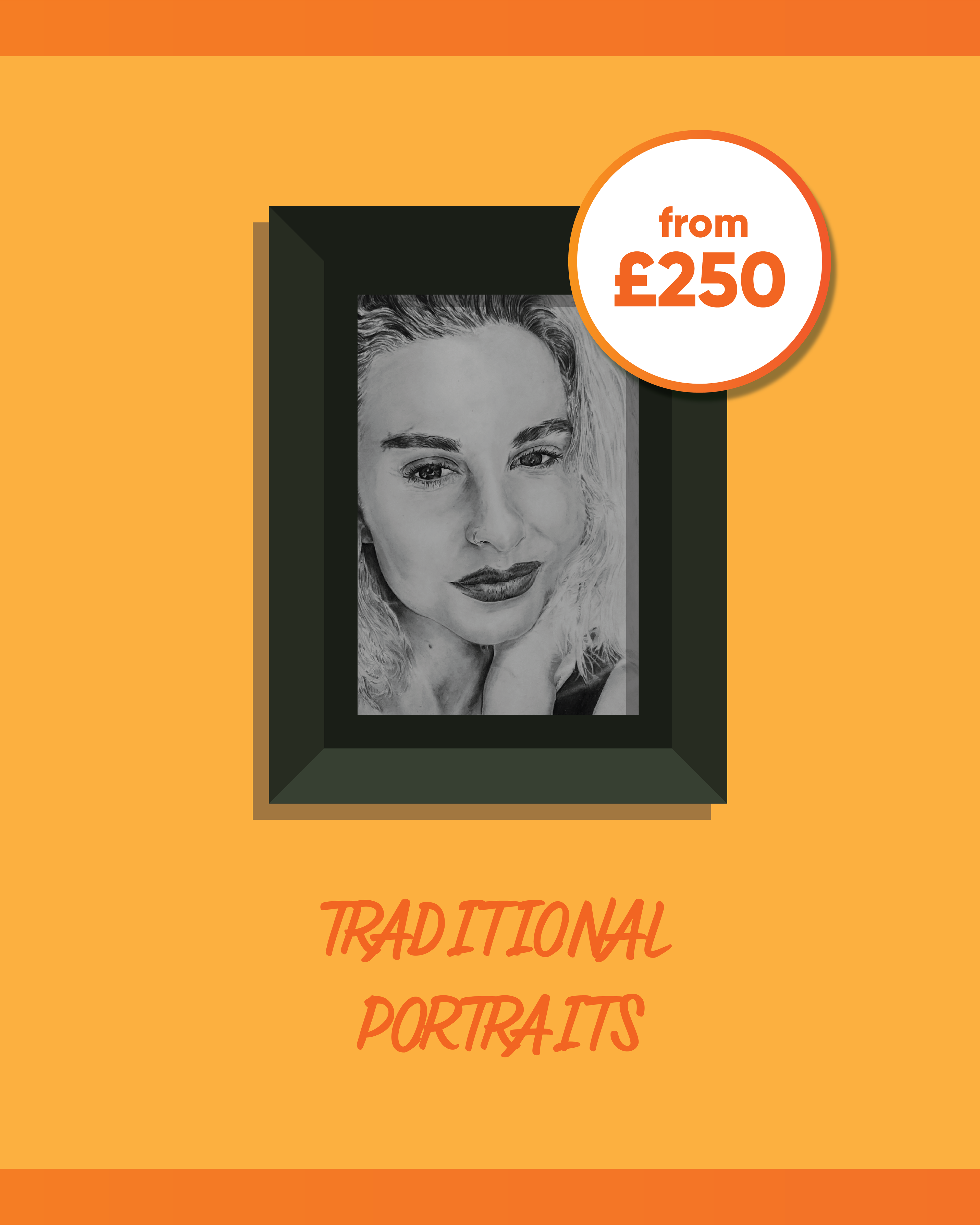 Done using graphite pencil on either A4/A3/A2 Bristol Board. I can do single portraits, couple portraits, group portraits of up to 4 people and pet portraits. Options available for gift-wrapping.