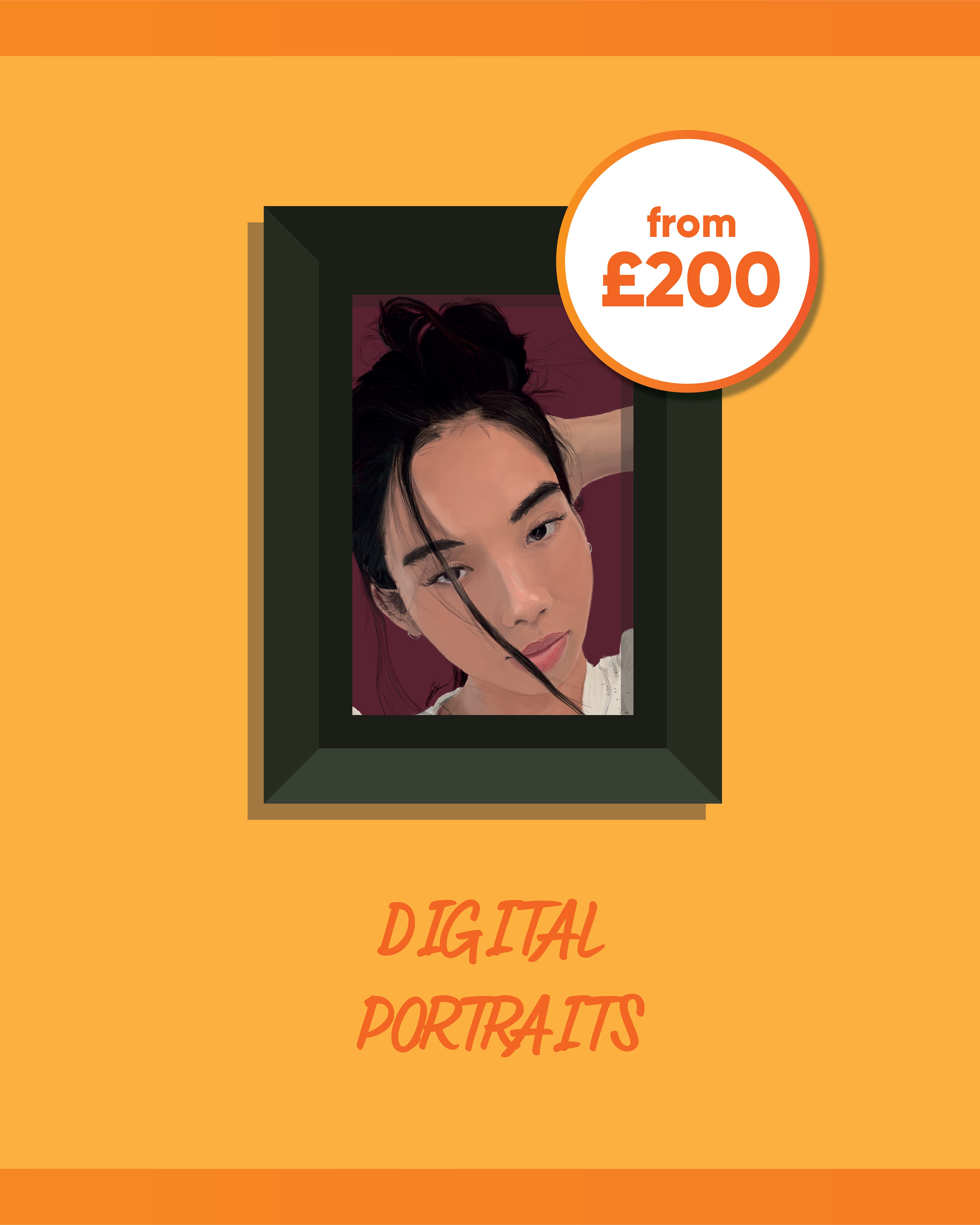 I can do single portraits, couple portraits, group portraits of up to 4 people and pet portraits. Various styles are available!