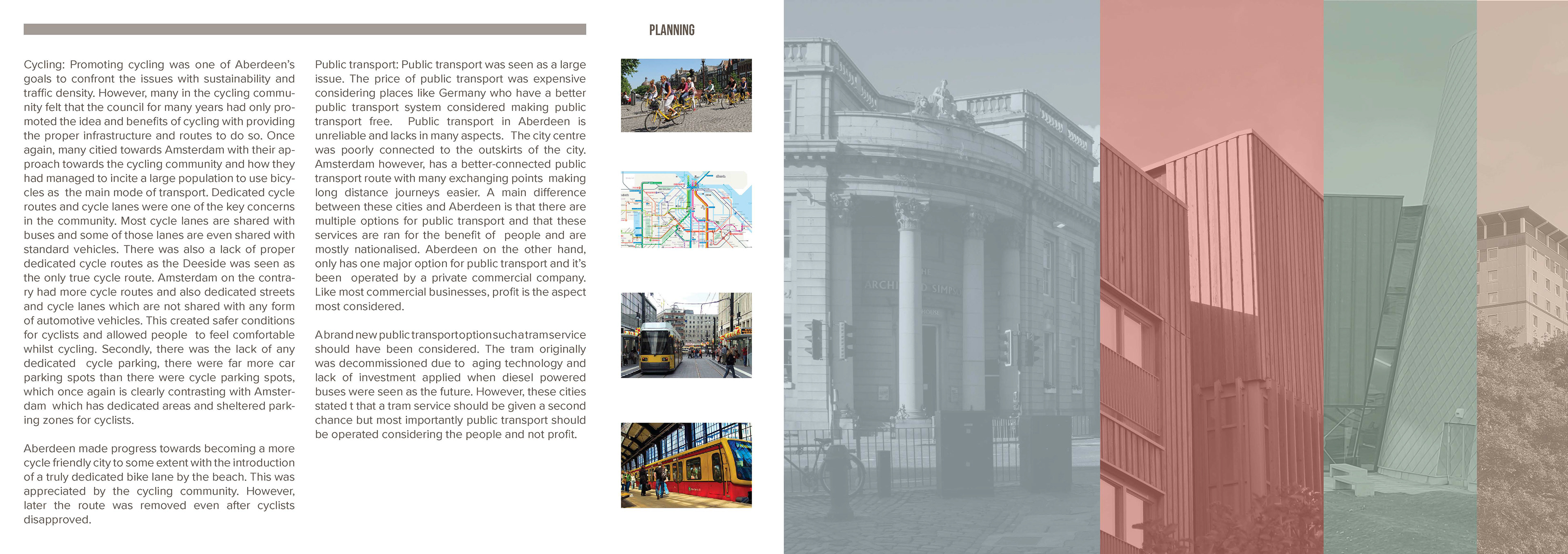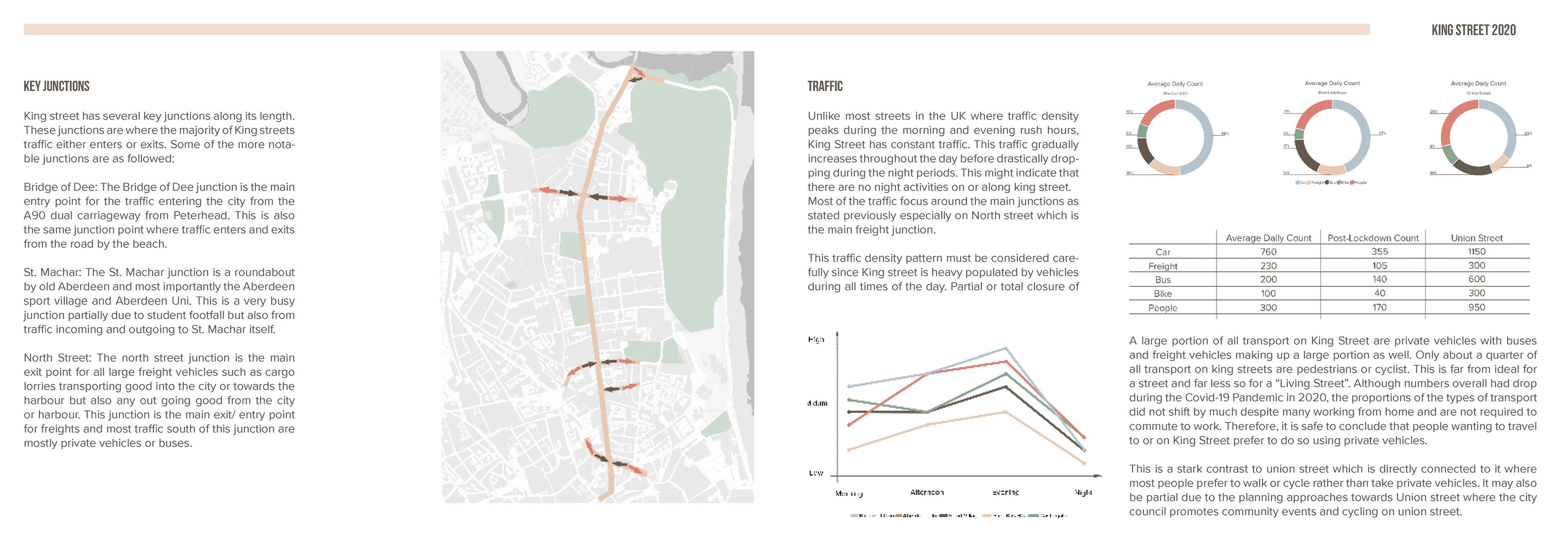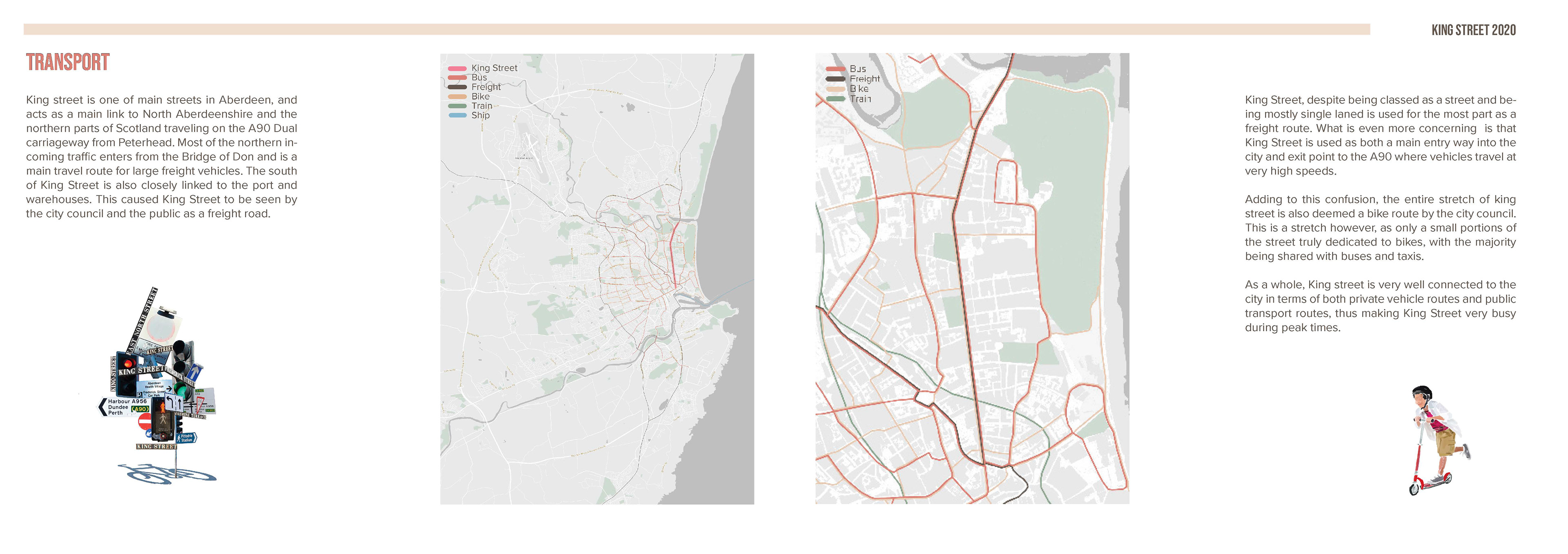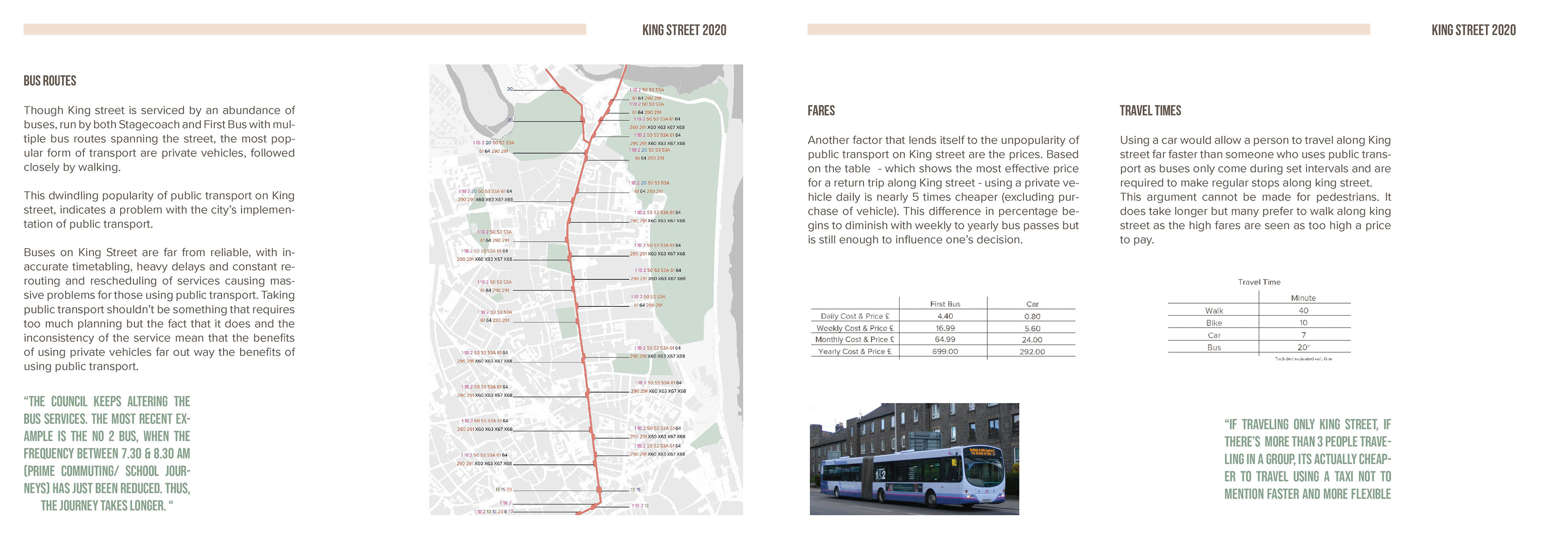 This report was part of my 5th Year work at University. As a group of students we were tasked with proposing a solution to pedestrianise King's Street in Aberdeen. I volunteered to lead the design and layout of the report.