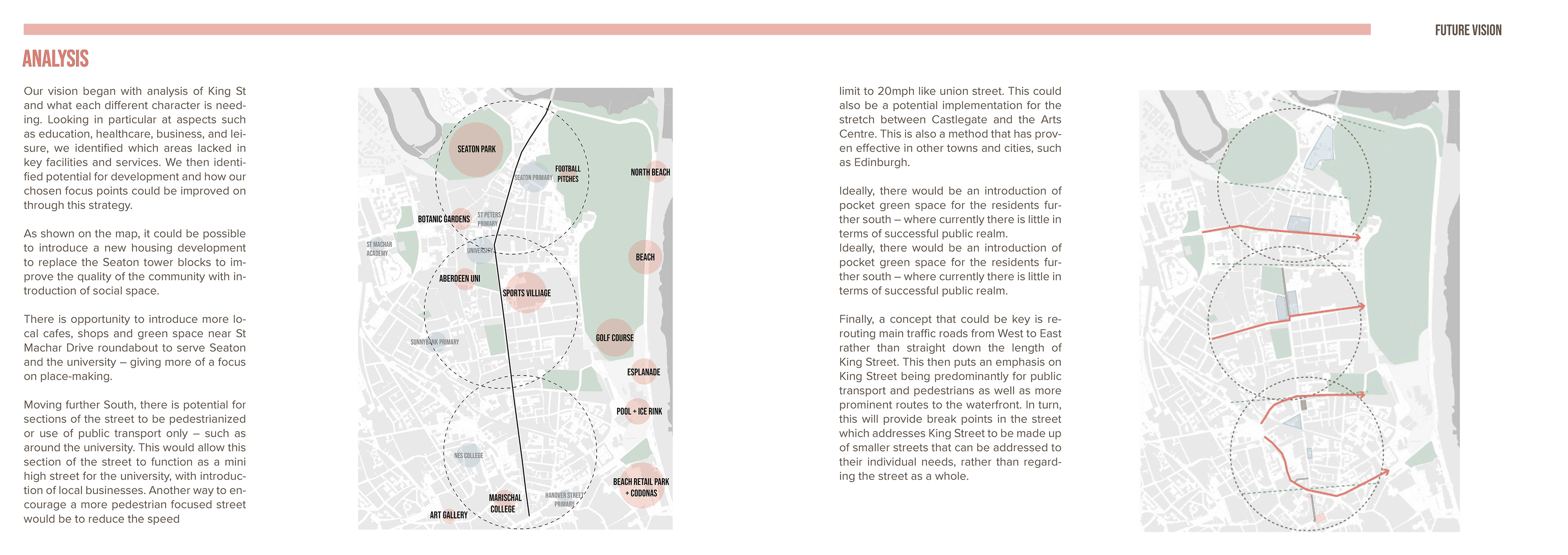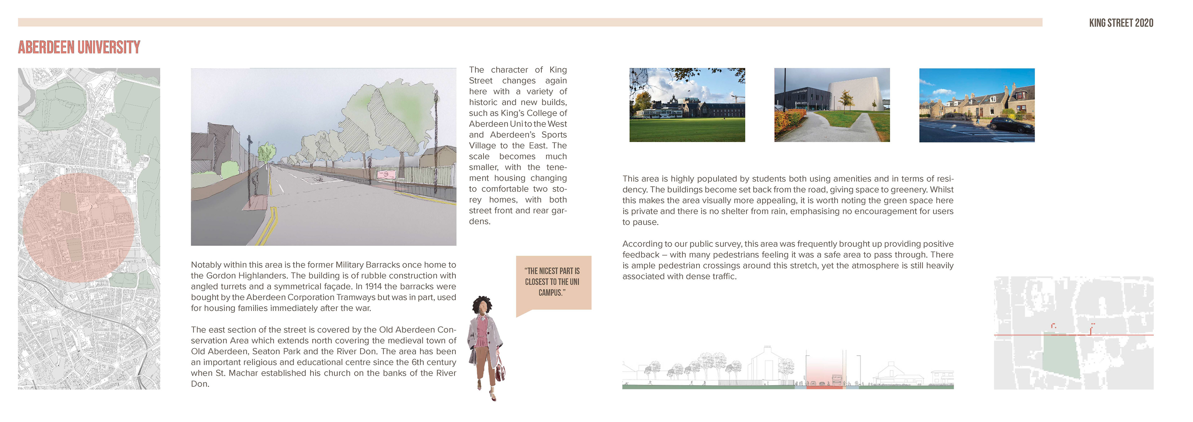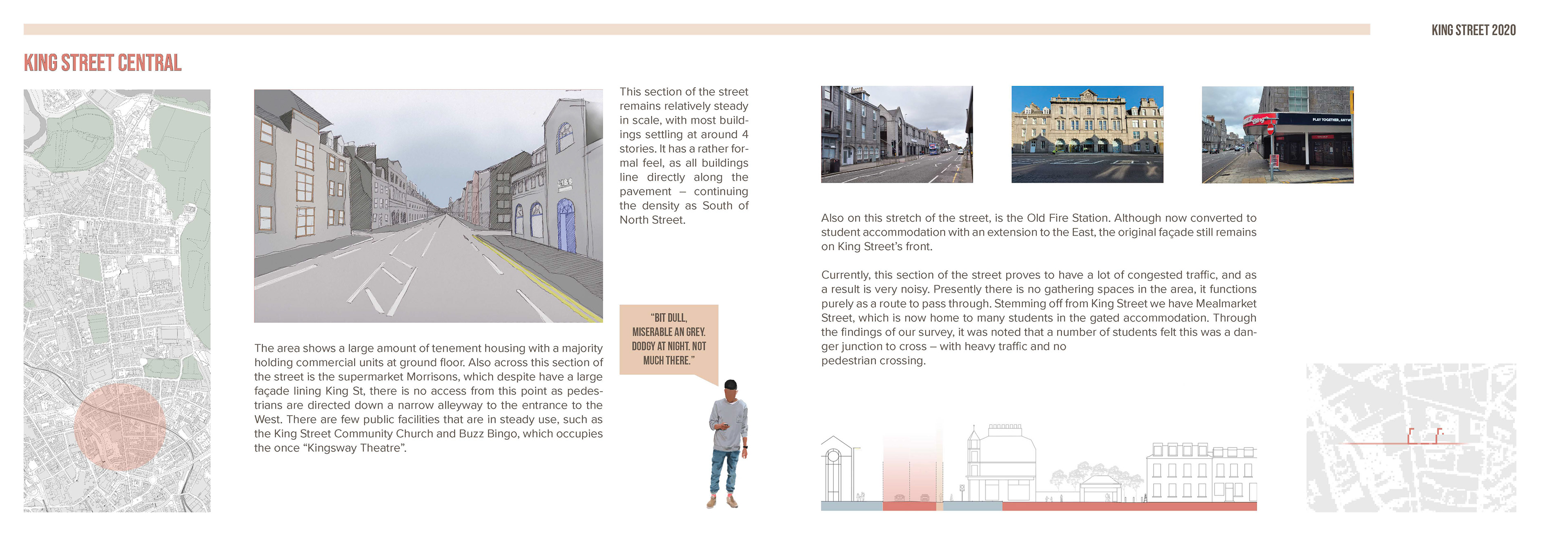 This report was part of my 5th Year work at University. As a group of students we were tasked with proposing a solution to pedestrianise King's Street in Aberdeen. I volunteered to lead the design and layout of the report.