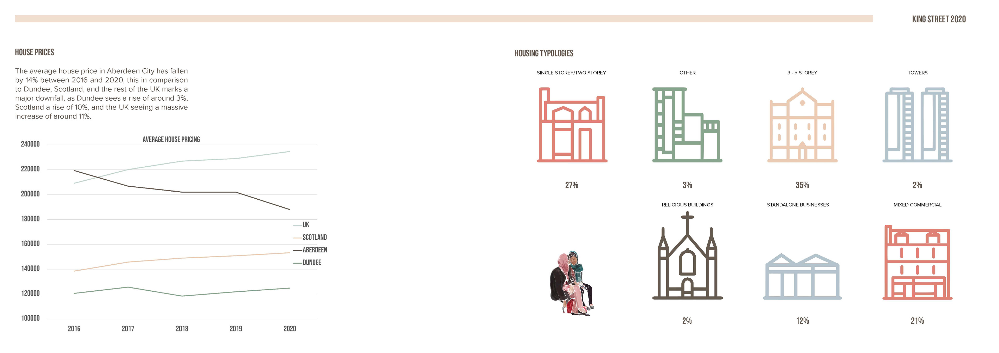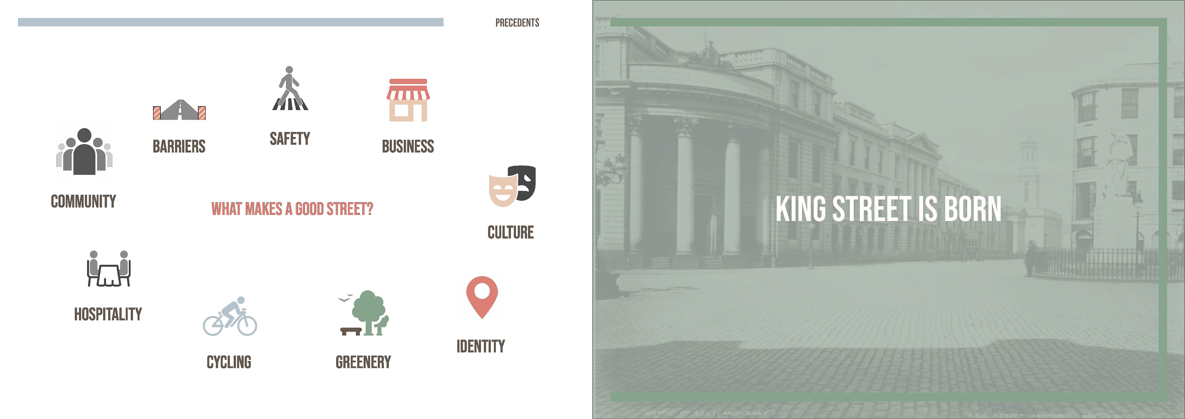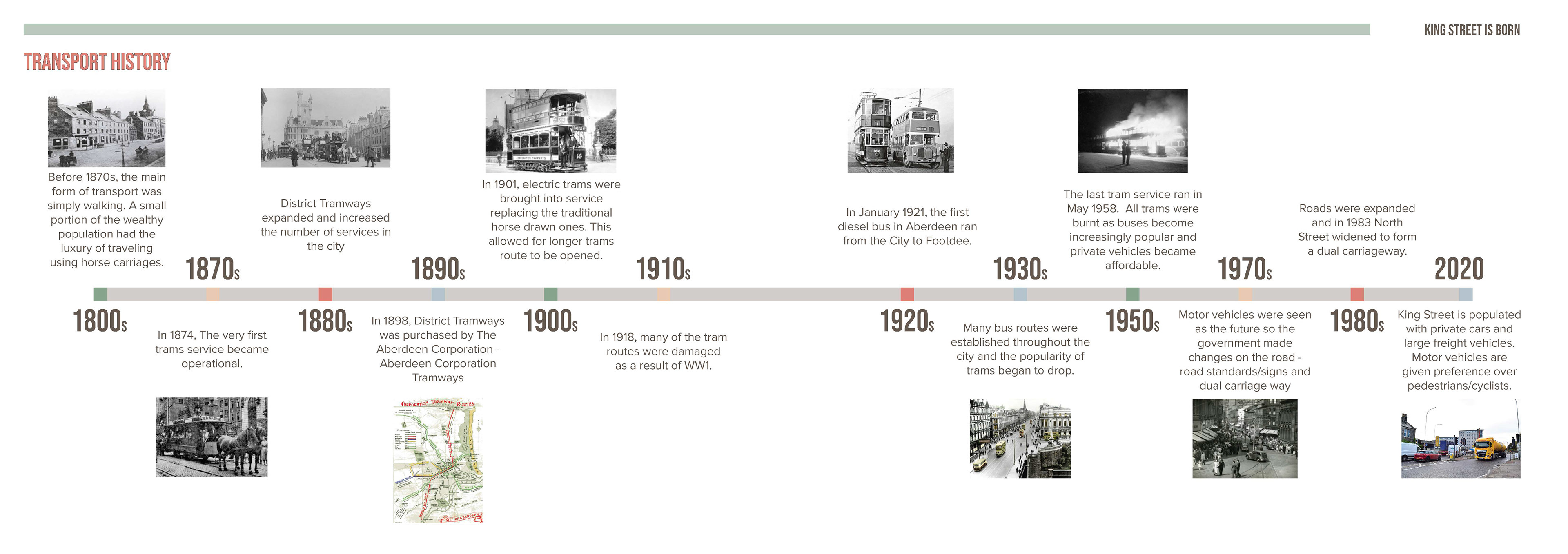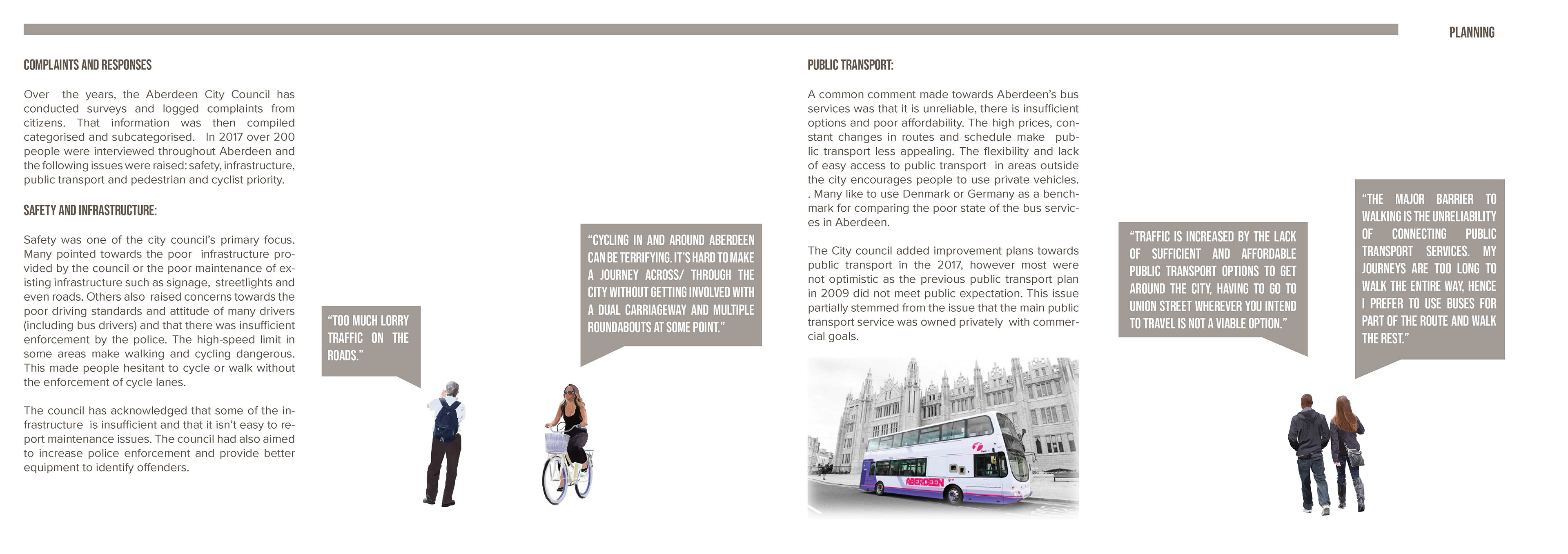 This report was part of my 5th Year work at University. As a group of students we were tasked with proposing a solution to pedestrianise King's Street in Aberdeen. I volunteered to lead the design and layout of the report.